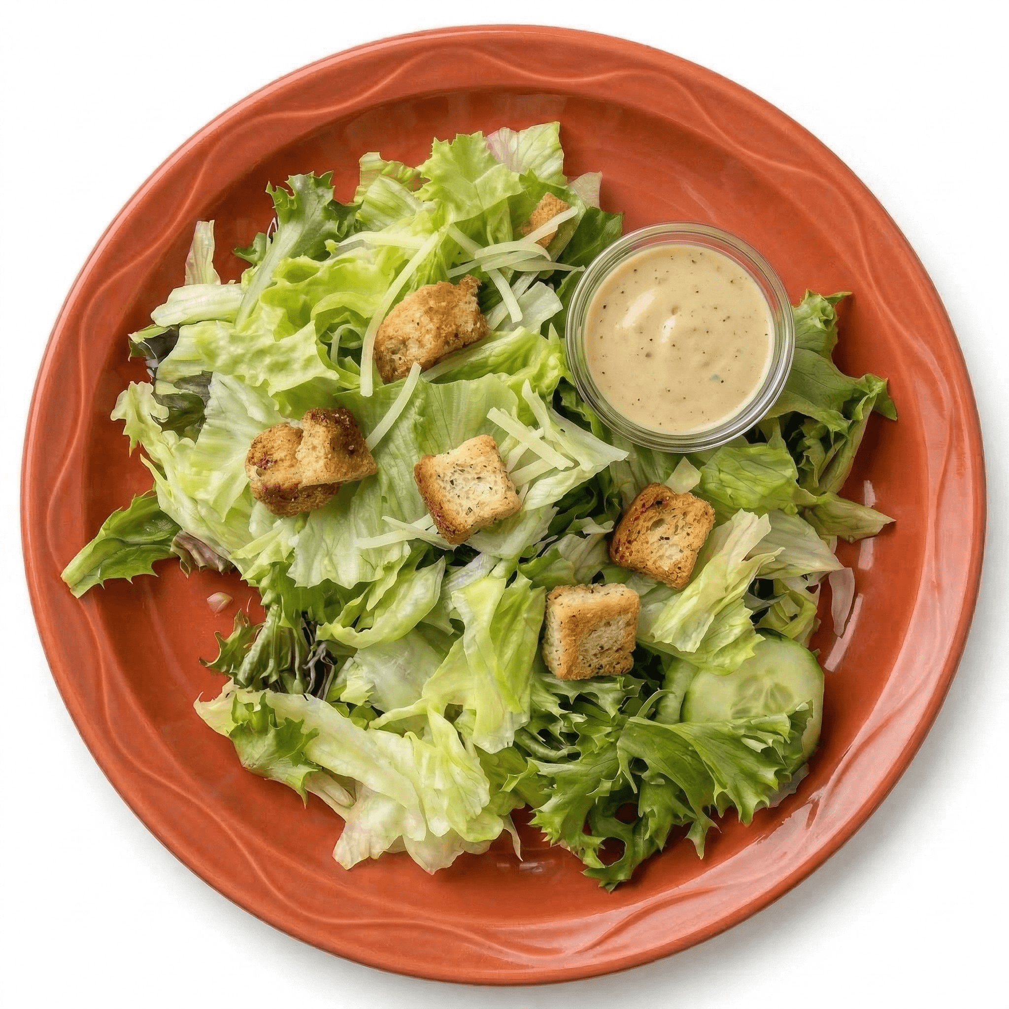 Crunchy romaine lettuce, croutons, and parmesan cheese come together in a classic salad