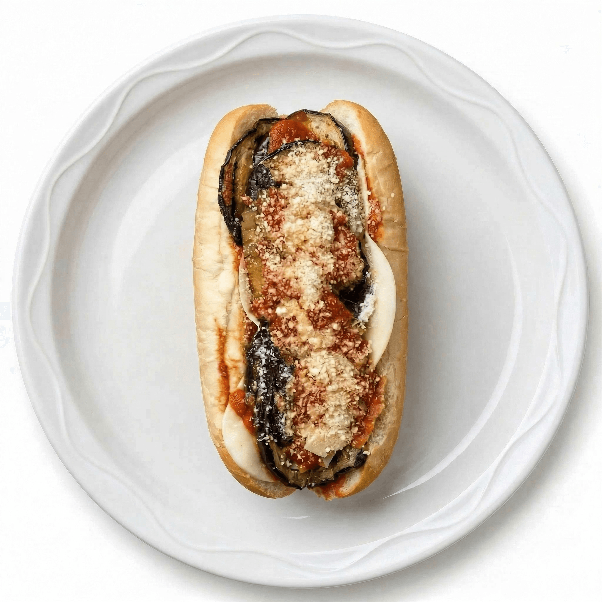 Eggplant and melted mozzarella in a crispy calzone